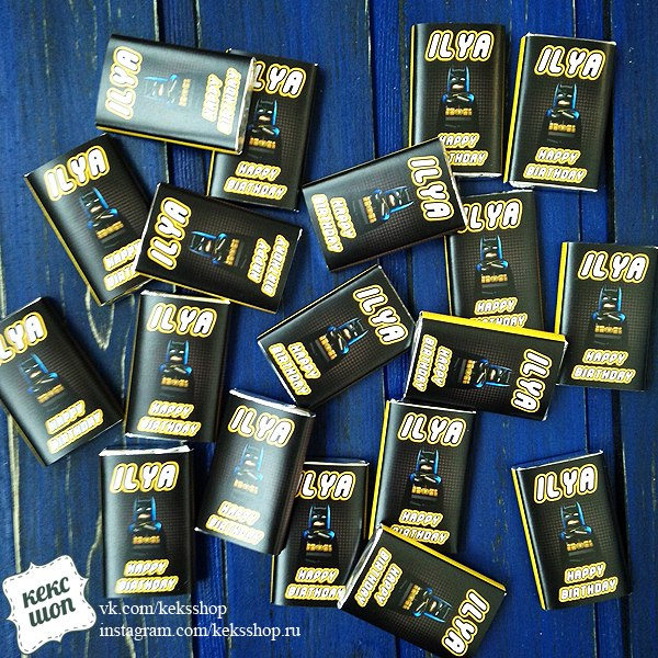 День рождения Илюши в стиле Lego Batman, именной шоколад: