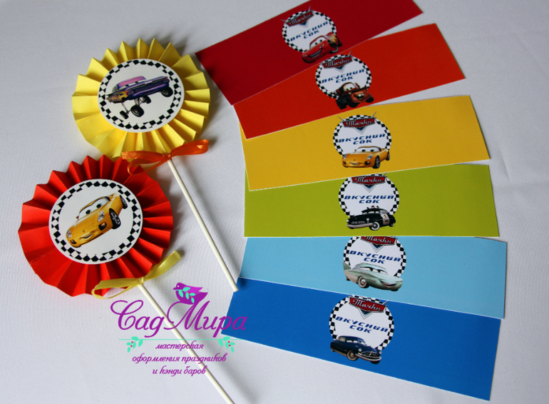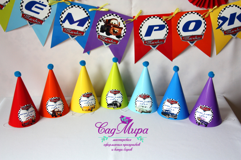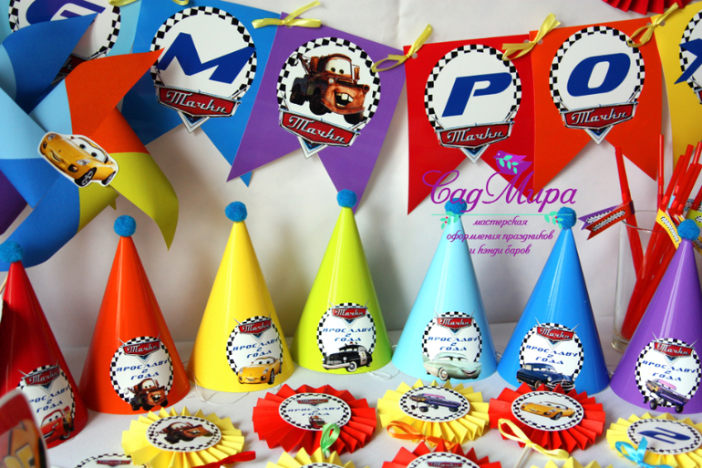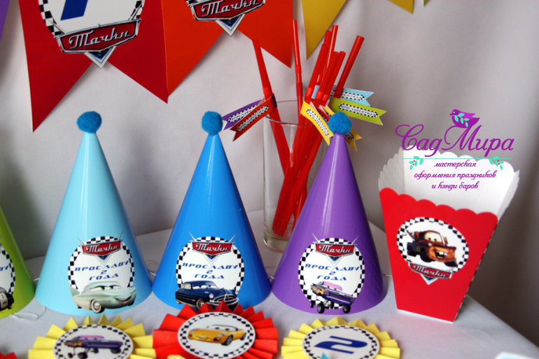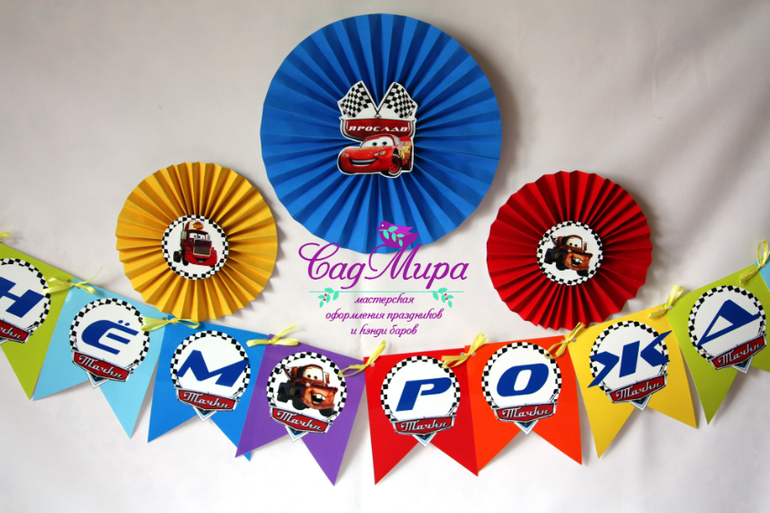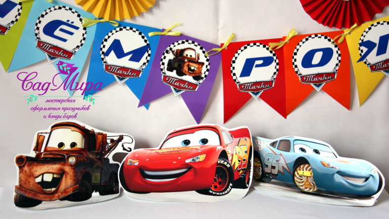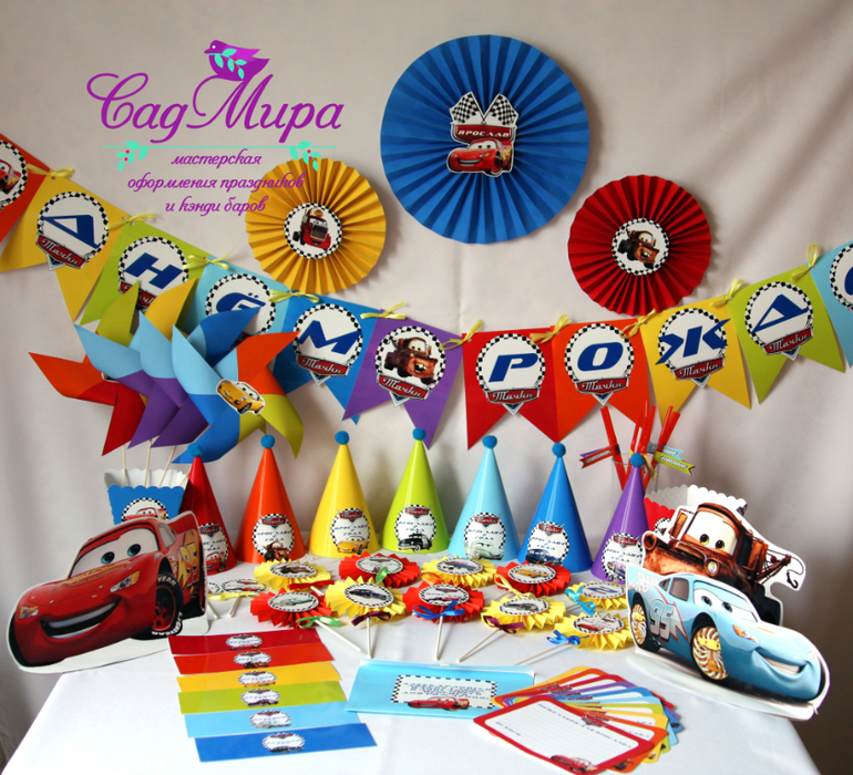 Набор для декора дня рождения в стиле мультфильма Тачки (радужное исполнение).