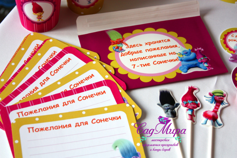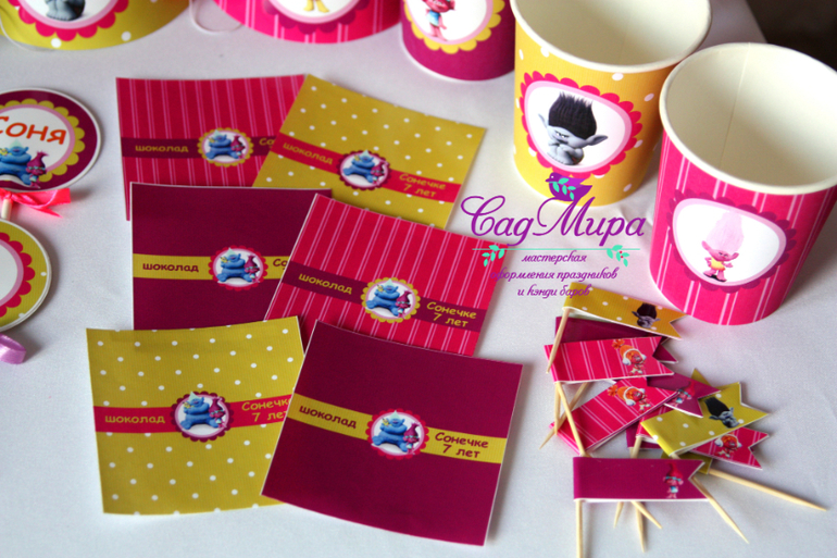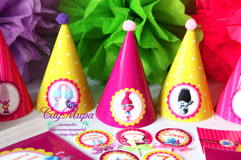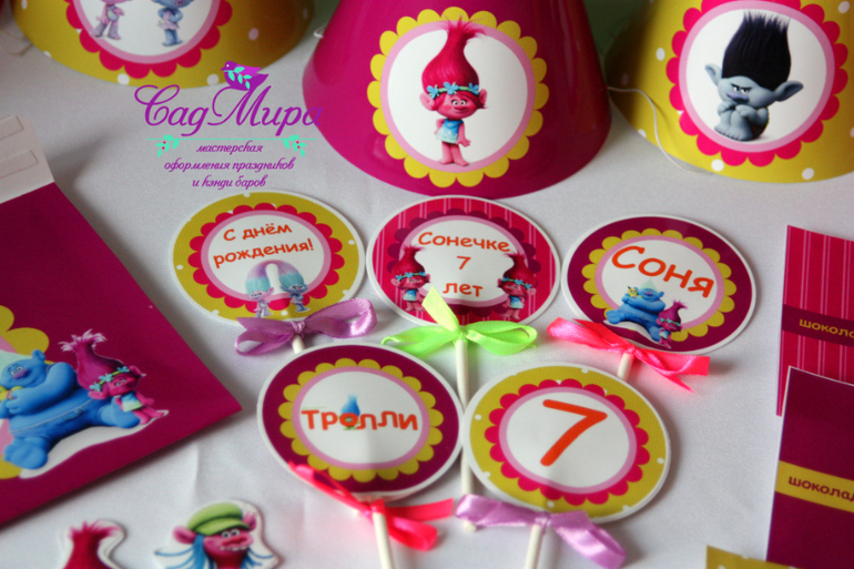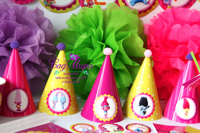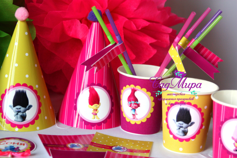 Набор атрибутики для декора дня рождения в стиле мультфильма Тролли.