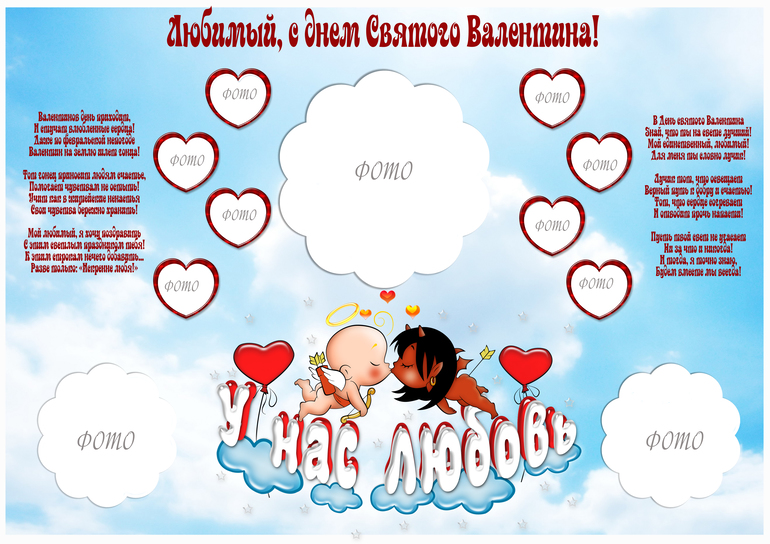 Взрослый праздникПриближается День Святого Валентина. Порадуйте своих любимых плакатом с совместными фотографиями!