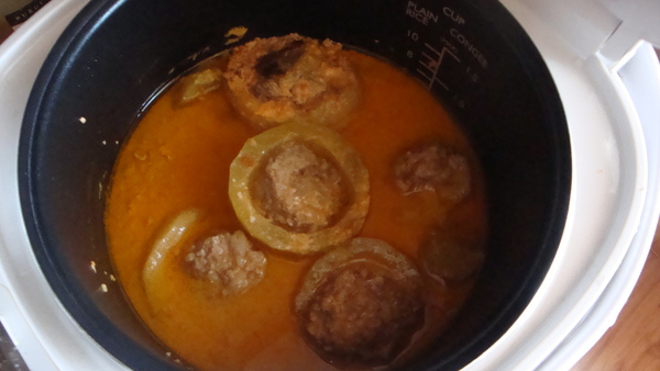 Все сложила слоями, залила соусом (сеголня делала сметана+кетчуп+помидор+чеснок) и постаивла сначала на тушение минут на 30, потом переставила на суп иварила еще минут 30, потом ушла, поставив на поддержание тепла.