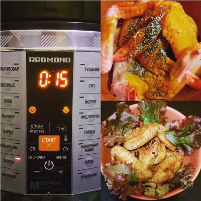 Продолжаю мультиварить. На этот раз жарила крылышки, предварительно замариновав - кориандр, итальянские травы, сладкая паприка, соевый соус. Ароматно и вкусненько. На жарке 15+15 минут.