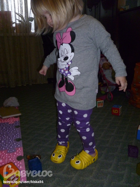 2. Пижама с Минни + тапочки гусенички. Пижама достойного качества, после стирки не полиняла, уже во всю спим в ней (не смотря на то, что она дочке великовата). Тапочки яркие, легкие. Как раз на летние отпуска и в бассейне очень пригодятся. Дочке они понравились, потом долго не снимала их.