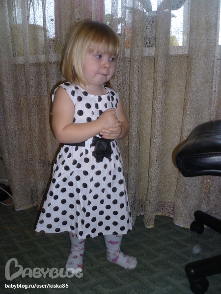 1. Летнее платьице в горошек. У дочи рост 91 см. Платье размер 100, великовато, но думаю к лету будет самое то. Очень легкое и приятное к телу.