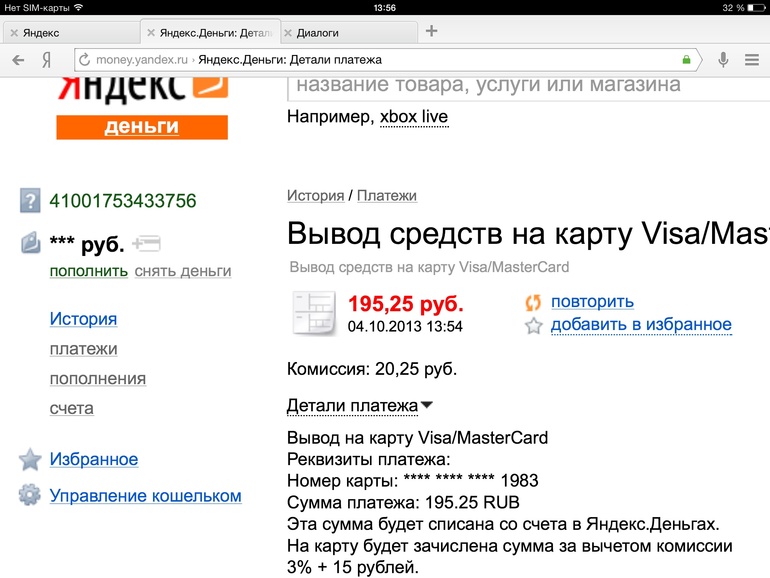 ОАО Сбербанк Россиичек по операциив Сбербанк ОнЛайнперевод с карты на картуДАТА ОПЕРАЦИИ: 03.10.13время операции (МСК): 16:38:18идентификатор операции: 600966отправитель:№ карты: 6390 02** **** **52 00получатель:№ карты: 4276 66** **** 1983ЕЛЕНА ВЯЧЕСЛАВОВНА К.Сумма операции: 300.00 RUBкод авторизации: 636175ОАО "Сбербанк России"