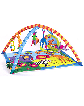 В комплекте 4-ре мягкие игрушки с разными эффектами (шуршат, гремят, жужжат..) и одна игрушка прорезыватель пластмассовая. Еще безопасное зеркало в мягкой оправе, крепится на липучке. Коврик оснащен свето-музыкальной панелью, которую можно вытаскивать. Два режима музыки. Музыка Моцарта. Все стирается в машинке. Состояние отличное. Цена- 2200р. ( куплен в "Детском мире" в "Форуме" за 3600р.)