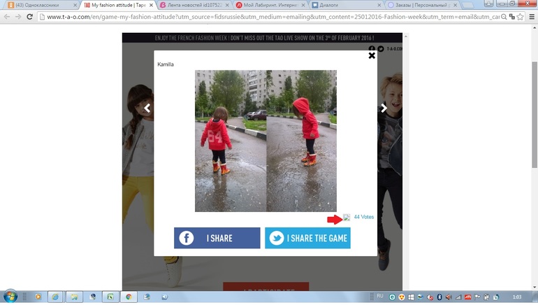 Нажимаем "I vote" в поиске вбиваем "Kamilla" (Girls 2-7 years) и там две фотографии в красной ветровке и красных резиновых сапогах. Кнопка для голосования находится рядом с количеством голосов (маленькая иконка). Голосовать можно каждый день заново и по несколько раз с разных устройств (телефон мужа, ребенка, бабушки, дедушки или компьютер). Конкурс продлится до 31 Января включительно. Всем заранее спасибо.