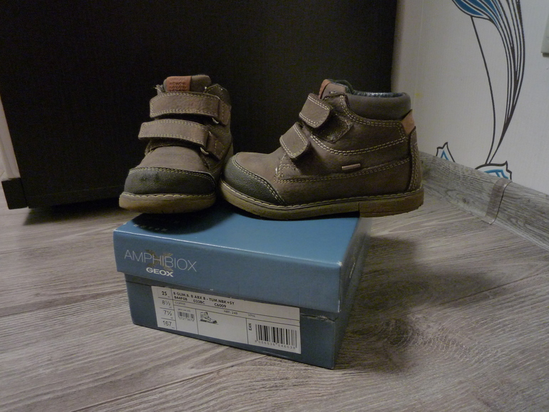 4. Ботинки, GEOX , натуральная кожа с утеплителем внутри. Размер 25, по стельке 15.5 см, б/у полтора сезона. Немного ободран нос одного ботинка.
