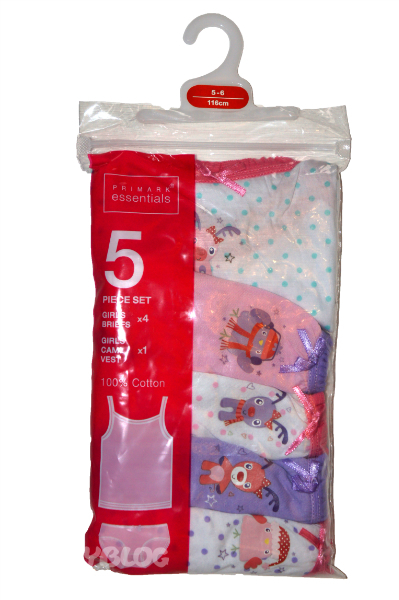 Комплект нижнего белья для девочки состоит из маечки и 4 трусиков-слипов фирмы PRIMARK EARLY DAYS.