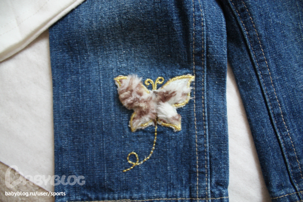 Девочка 6-12 мес.(74-80см.)США, качество супер Комплект из трех вещей, шубка+джинсы+кофточка размер 6\9 мес, б\у 1 раз (кофточка новая) в 10 месяцев, цена 1500р. на кофточке и джинсах бабочки из меха как шубка:)