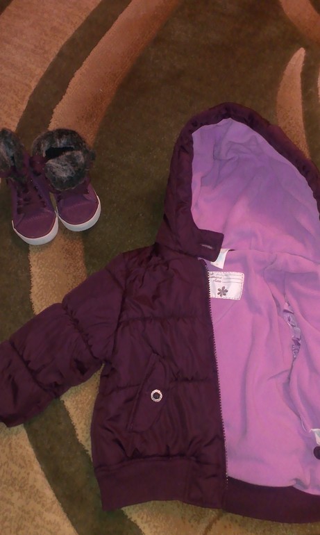 Подбирала комплектом на весну осень) Курточка на синтепоне и флисе, кеды ( замша) утеплены каким-то ворсом)) Носили примерно до 12 градусов.Состояние хорошее