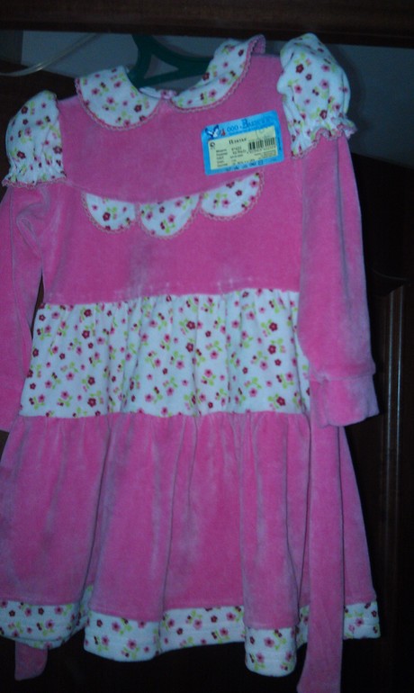 3а) ПЛАТЬЕ ЖЕЛТОЕ, цвет в реале другой нежный-нежный скоре крем с желтизной, очень красивое, фото по тзапросу, мы в таком ходим до сих пор как раз, но мы худышки, вес 13кг370Р