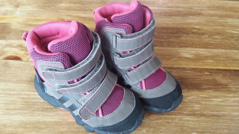 Обувь для девочкиБотинки Адидас, размер 21, стелька 13 см. Мембрана. от +5 до - 10. Можно и холоднее, но мы не пробовали. В очень хорошем состоянии. Легкие и удобные, легко одеваются. Ножке в них комфортно, вообще не потели ни разу.