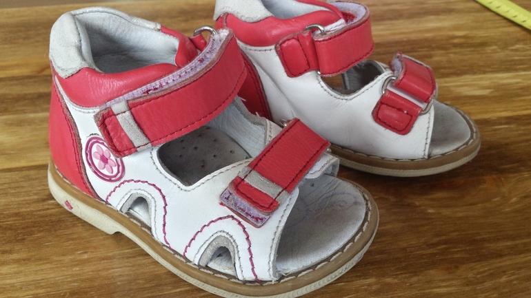 Обувь для девочкибосоножки Минитин р- 19, кожа на коже. На пяточке ободрана кожа - на фото видно. Все остальное в идеале - носили совсем мало. Стелька 12 см.
