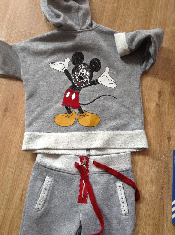 На спинке аппликация Микки Маус, материал с серебристой нитью. Суперский!!!