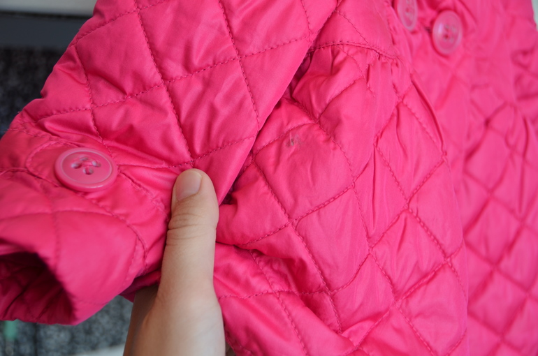 Здравствуйте размер лёгкой курточки ? И подскажите, кроме дырочки какие есть нюансы? Строчки, цвет, воротник, рукава?