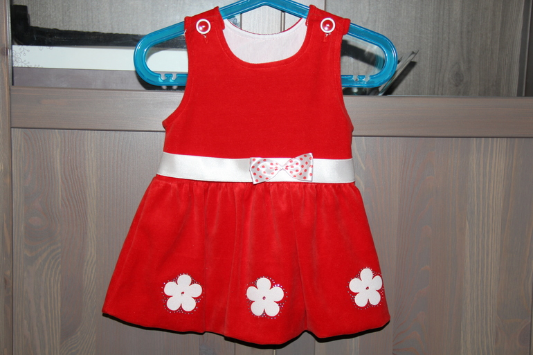 Девочка 6-12 мес.(74-80см.)Сарафан с болеро надет один раз на год (велюр -хлопок) Болеро и пояс снимается.
