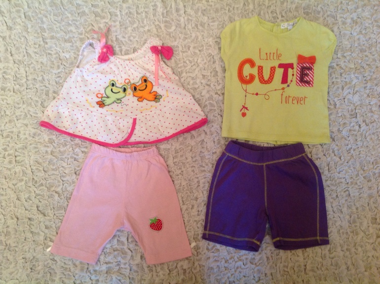 12)маечки и шортики с клубничкой Турция+футболка и шорты c&a,68 см, 250 руб