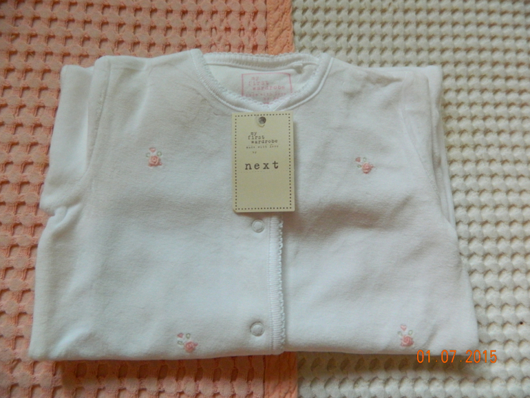 4. НОВЫЙ! Белый велюровый комбинезон NEXT для девочек (9-12 мес.). Цена 650 руб!