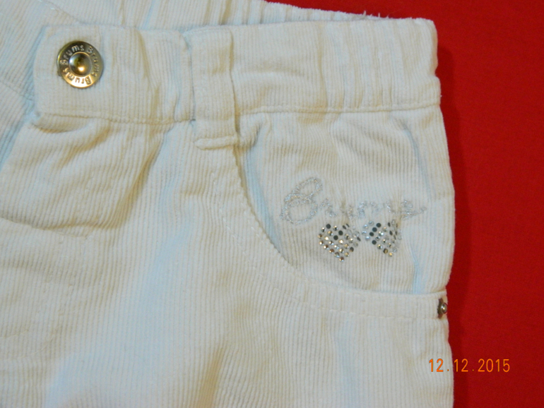 3. Брючки Brums, микровельвет, р-р 9 мес. можно дольше носить, мы и в 1г 2 мес одевали). Состояние отличное, пятен нет. Единственное, на кармашке несколько страз нехватает...350 руб