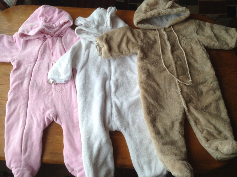 Девочка 6-12 мес.(74-80см.)Расстаёмся с нашими комбезиками, носили осенью. Розовый и бежевый с ножками внутри ут плательную, белый без ножек и без утеплителя. Подклад у всех Х/б трикотаж. Белый в идеале, бежевый в очень хорошем состоянии, у розового есть два пятнышка: на ножке у молнии и на попе. Цена: розовый 500, белый 900, бежевый 800.