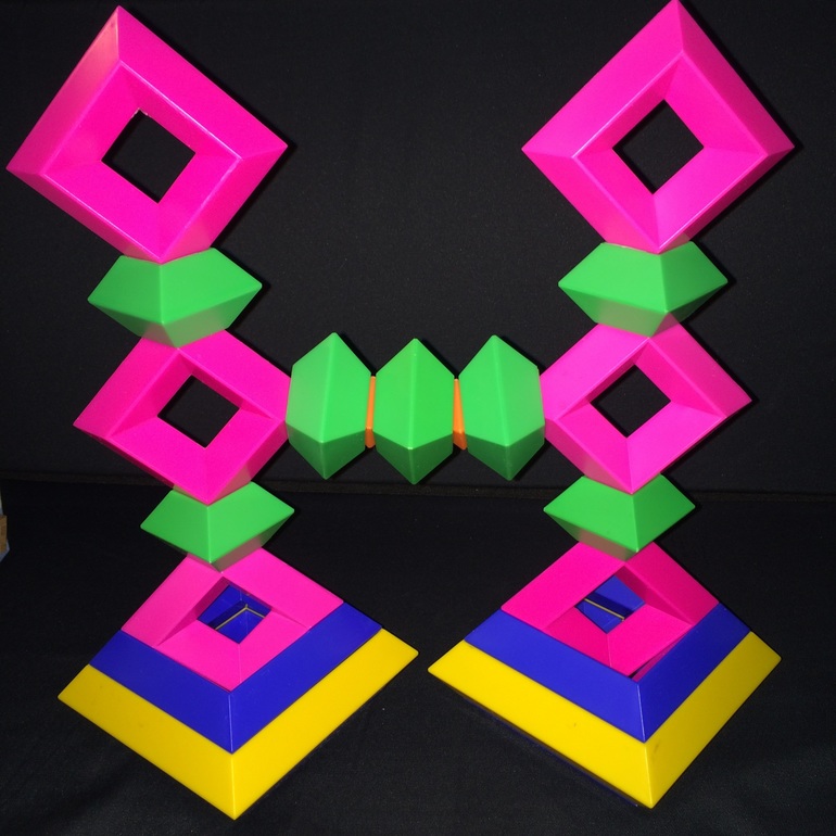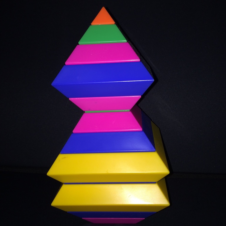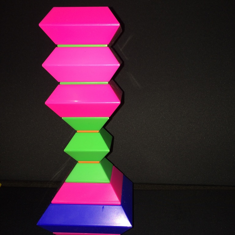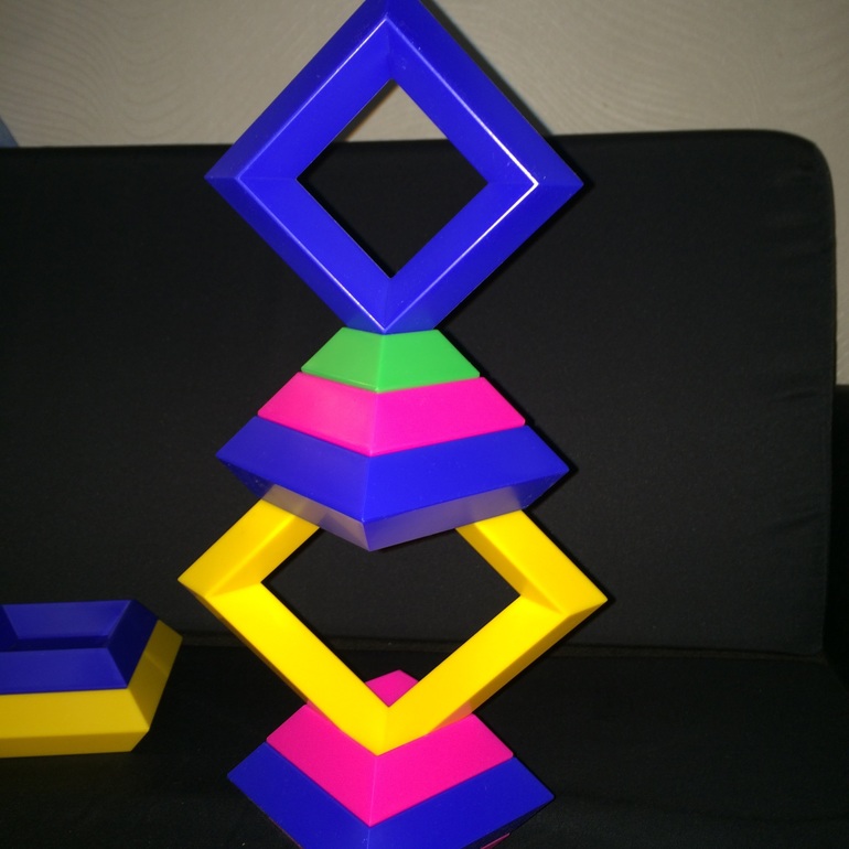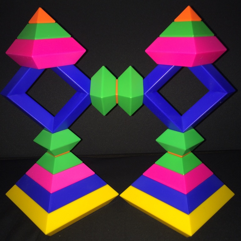Хотя игра Дуэт-пазл ее совсем не заинтересовала, пирамидка поинтереснее, она объемная и крупные вещи получаются. Фантазировать тоже любит.