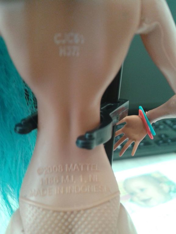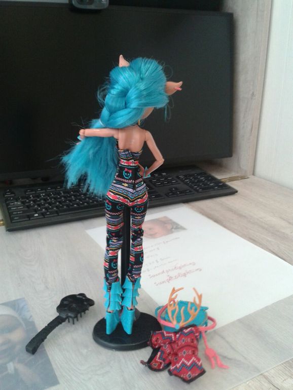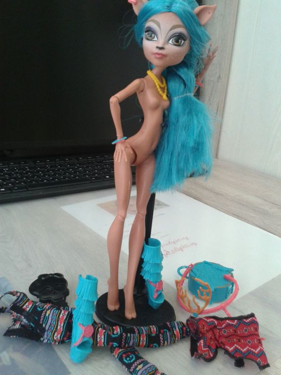 Куколка идет с расческой из аксессуаров сумочка (она открывается и в нее можно что-нибудь положить), браслеты на руках, сережка, колье и обруч.