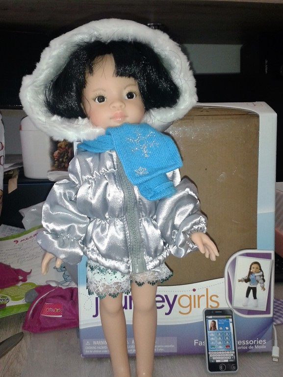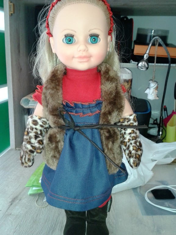 Сапожки на ножку 6 см. Для паолочки большие на Анну налезли, но опять же нога у нее шире поэтому сапожки в облипку. Руковички Анне хорошо подошли. Жилет увидите на фото налез, но наша красавица широковата в груди ))) Паолочке жилет как шуба))