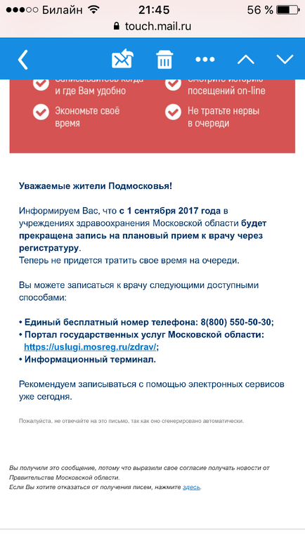 Мне пришло письмо с сайта, где к педиатру запись, что с 1го сентября там будет запись ко всем профильным врачам, а в регистратуре больше не будет. Сейчас скрин попробую добавить