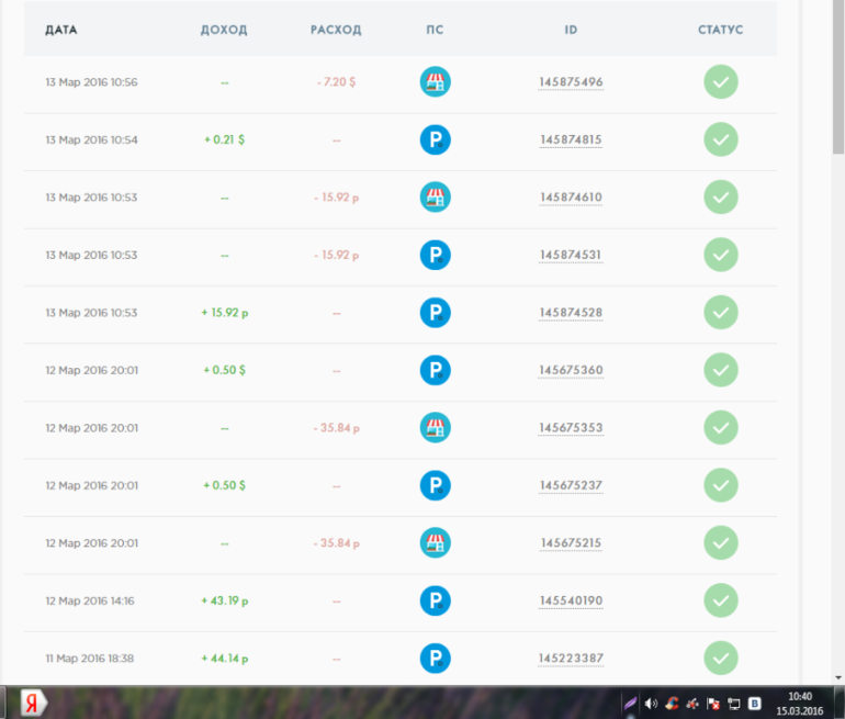 - Достаточно платёжных систем для вывода заработанных средств, таких как: WebMoney, Perfect Money, Yandex Money, Payeer.
