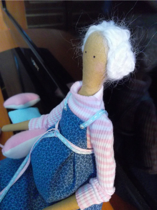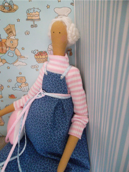 Материалы: американский хлопок, хлопковый трикотаж, шерсть, синетпон, ленты.