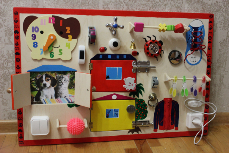 Это бизиборды, которые уже находятся у своих маленьких хозяев.