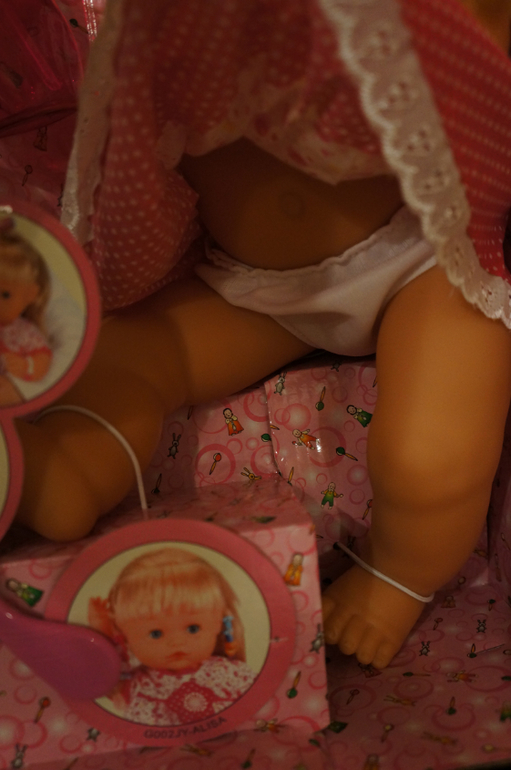 Брала куколку по акции, затакую цену очень довольна качеством. Глазки закрываются, ничем не пахнем. Есть пупочек и трусишки. Моей сейчас нет. но есть эта кукла (тоже по акции!) с большим количеством аксессуаров и с ботинками, а главное с машинкой для плетения косичек!