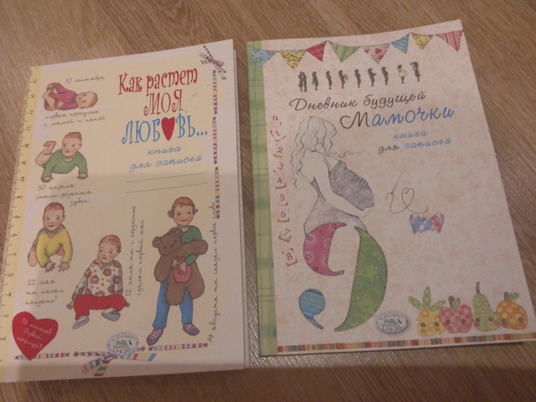 это вроде записных книжечек для мамы и будущей мамы. мне понравились. та что малыша, расчитана до 3 лет. обложка мягкая, но на ощупь очень приятная.