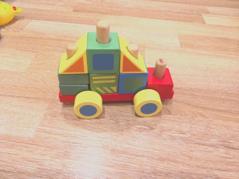 машинка -конструкор. мне понравилась. Колеса крутятся, сынок детальки одевает и конечно грызет.
