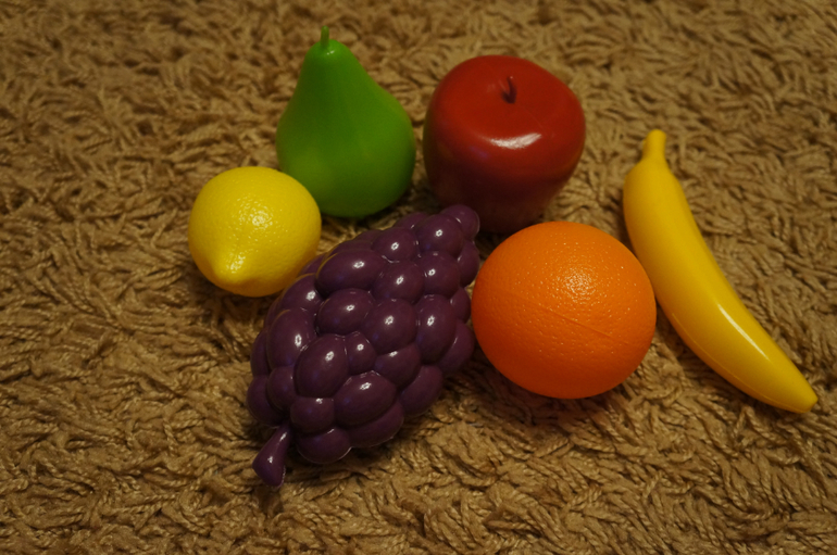 Пластик там потоньше, но зато есть интересные фрукты - карамбола, манго, клубничка, авокадо, мандарин.....Брала для разнообразия и количества. Интереснее играть :)