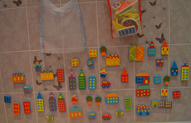 Размер фигурок достаточно большой. Фигурку надо лишь намочить и приложить к кафелю.Держатся фигурки на стене долго.