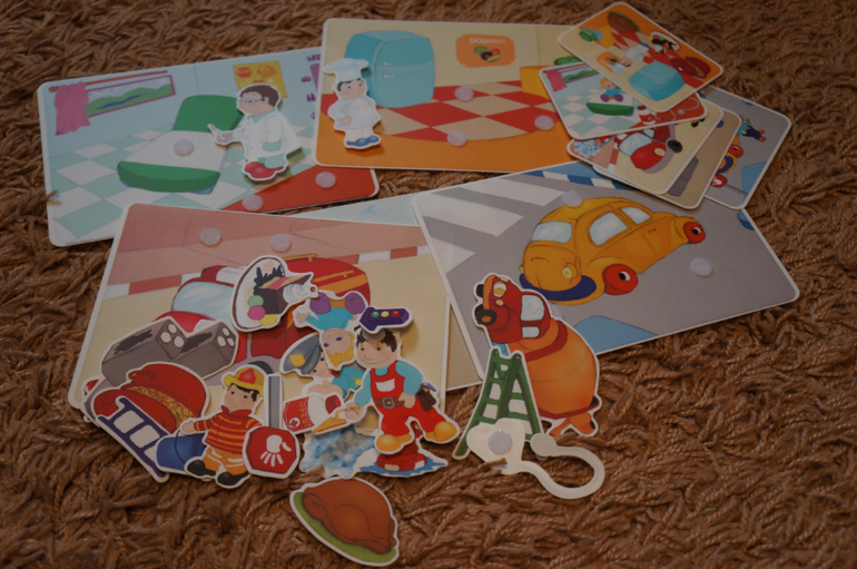 Есть карточки образцы. Много отдельных инструментов из каждых профессий.