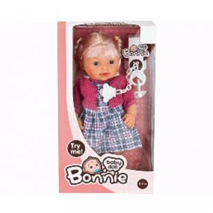 Кукла озвученная. Высота: 30 см. Материал: ПВХ. Глаза - оргстекло. 12 вариантов звука. Папа, мама и прочее. В комплекте соска.