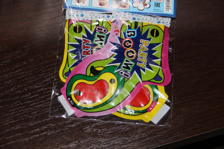 2 штуки в наборе. В комплекте: трубочка для надувания хлопушки, серпантин.