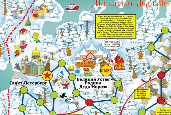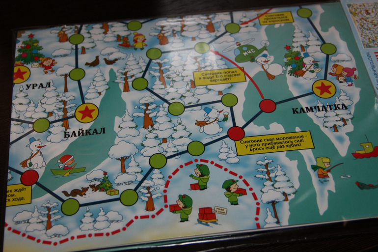 Классическая игра-шагалка создана в стилистике комикса. Красочное игровое поле на новогоднюю тему размером 57x42 см. 4 фишки. Шестигранный кубик. Рекомендуется для тех, кто умеет или учится читать.