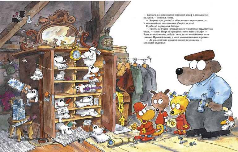 Ничто не нарушало покоя постояльцев и хозяев отеля "Веселый бука". Но вот однажды мадам Фаина купила на аукционе старинные напольные часы эпохи короля Якова. И началось! Как в часовой механизм попала овсяная каша и ложка капитана Сорвиголовы? Кто перевязал циферблат дядюшкиным ремнем? Какие загадочные силы устроили ночью тарарам и выгнали жильцов во двор? Обитатели отеля решают раскрыть тайну старинных часов!