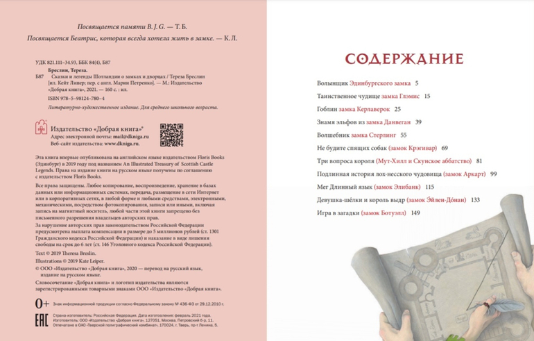 В книгу вошли 11 сказок и легенд, связанных с древними замками и дворцами Шотландии, в том числе малоизвестные сказки и легенды, впервые публикующиеся на русском языке.