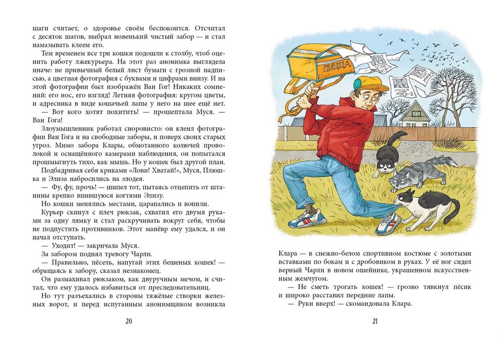 На помощь кошкам по первому зову готовы при мчаться верные друзья - отважный чихуа-хуа Чарли, оптимистичный мопс Мусик, дворняги Кузя и Фомич, мейн-кун Ван Гог, деревенский кот-воришка Вася и другие.