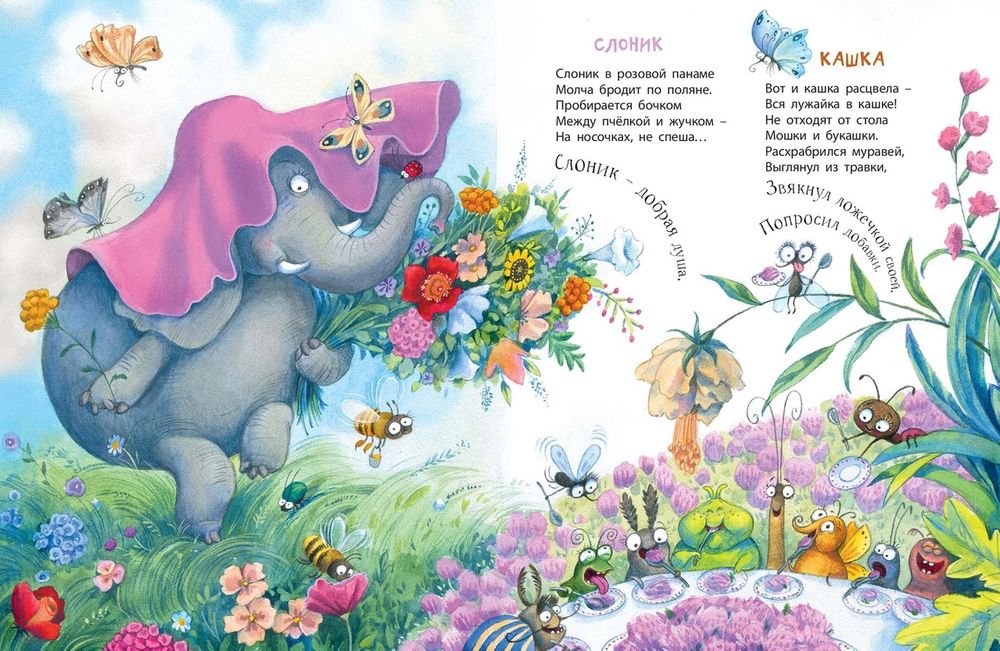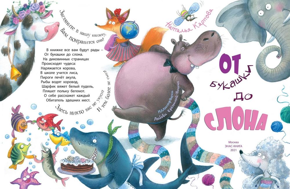 Откройте эту книжку - и вы тут же попадёте в удивительную страну. Кого тут только нет! И о себе расскажет каждый обитатель здешних мест. Здесь акула умеет печь пироги, жираф принимает тропический душ, а ещё в ней живёт самый добрый на свете слон! Весёлые стихи Натальи Карповой и нежные иллюстрации Любови Ерёминой-Ношин обязательно понравятся детям и их родителям!