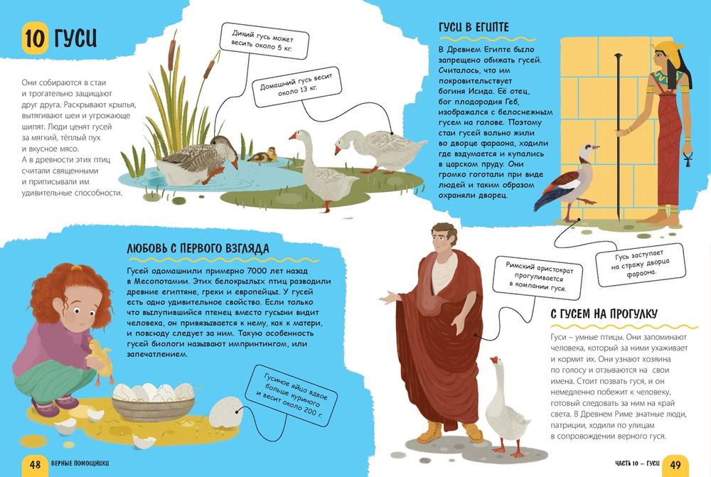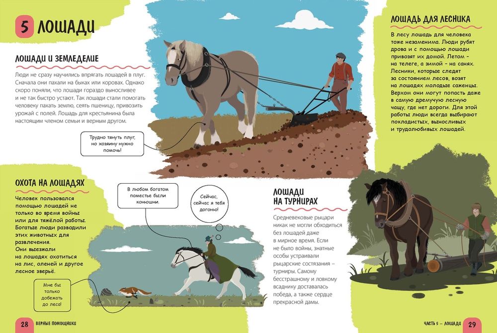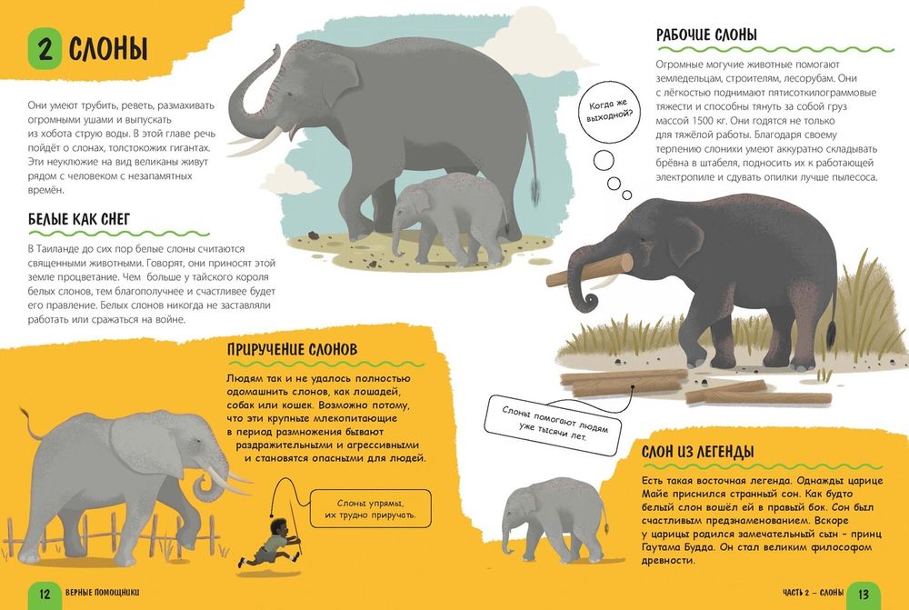 Собаки, кошки, голуби, слоны, гепарды и все те, о ком рассказывает эта книга, не всегда были покладистыми и кроткими помощниками людей. Но без них человек до сих пор жил бы в пещере. Они помогали ему сберегать урожай, охотиться, путешествовать, развлекаться и даже воевать. Долгая история дружбы человека и животных наполнена удивительными, порой драматическими событиями. Создатели этой красочной познавательной книги с благодарностью и восхищением рассказывают о наших «меньших братьях» и учат ценить крепкую дружбу между людьми и животными.