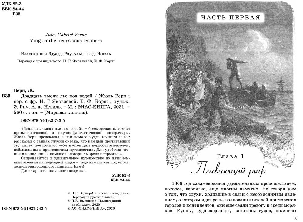 Двадцать тысяч лье под водой» - бессмертная классика приключенческой и научно-фантастической литературы. Жюль Верн предсказал в ней немало чудес техники и так рассказал о тайнах глубин океана, что каждый прочитавший эту книгу почувствует себя настоящим первооткрывателем, побывавшим в кругосветном путешествии. Для удобства чтения в конце книги помещен словарик морских терминов. Отправляйтесь в удивительное путешествие по пяти земным океанам на подводной лодке - чуде инженерии под управлением таинственного капитана Немо!
