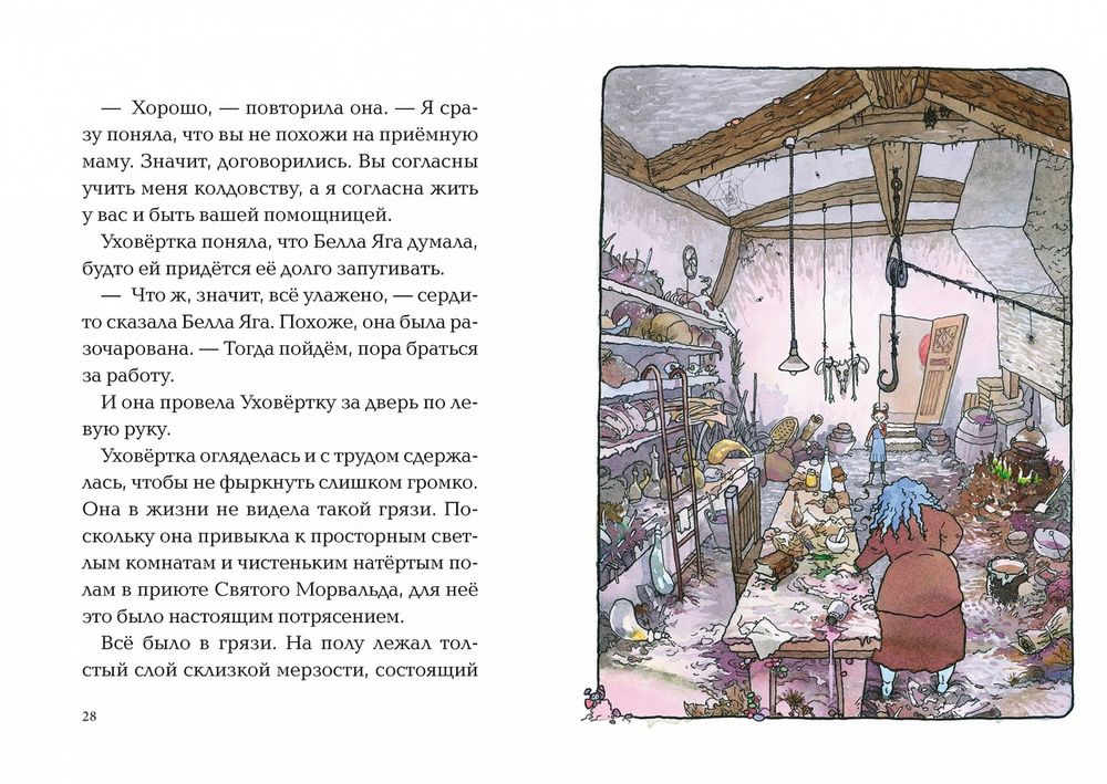 Думаете, все дети в сиротских приютах мечтают о том, чтобы их поскорее забрали? Ая по прозвищу Уховёртка точно не из таких. В приюте Святого Морвальда ей очень даже нравилось: если Ае хотелось запеканку, повар готовил запеканку, а если хотелось новый свитер, заведующая миссис Бриггс тут же мчалась в магазин! Так что каждый раз, когда на пороге появлялись потенциальные родители, Ая старалась выглядеть как можно противнее, чтобы никто даже не подумал её удочерить. Это всегда срабатывало, пока в приют не пришла Белла Яга, самая настоящая и совсем не добрая ведьма…