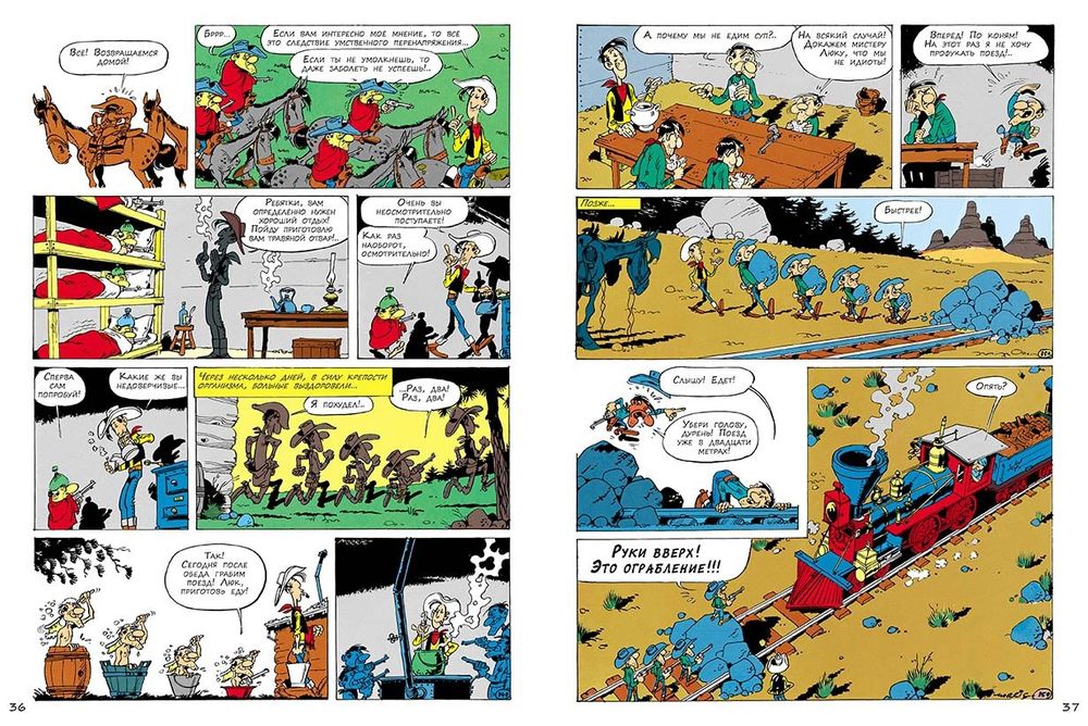 Особо стоит отметить удобный для чтения крупный шрифт, благодаря которому комиксы о Счастливчике Люке подойдут начинающим читателям и станут для них первой ступенькой к чтению романов Фенимора Купера и Майн Рида.