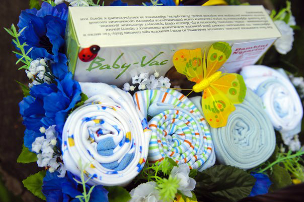Главный приз: и замечательный и оригинальный букет из полезных вещичек для малыша от наших друзей .